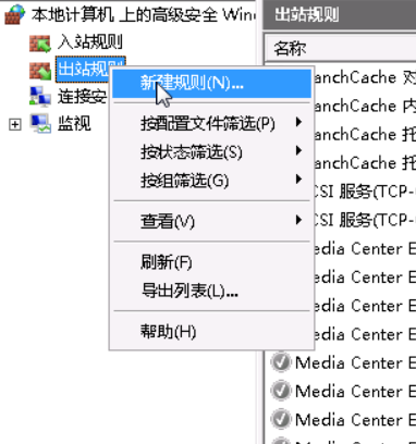 1)右键出站规则-->新建规则,如下图: