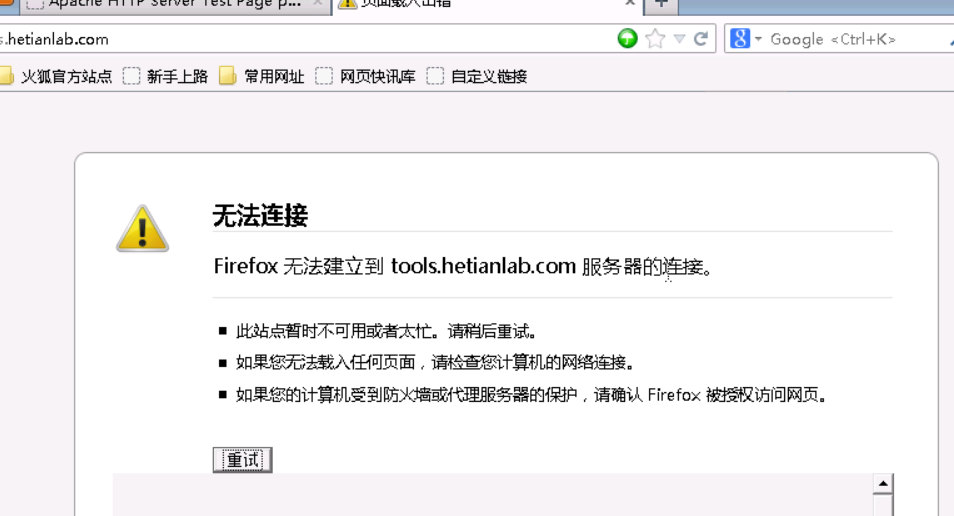 打开浏览器,输入刚才测试的网站,已无法访问。