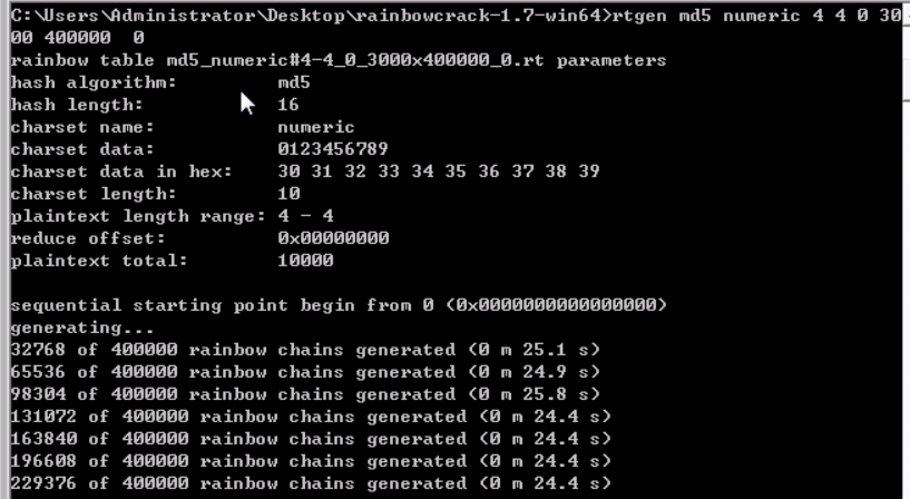 使用命令:rtgen md5 numeric 4 4 0 3000 400000 0