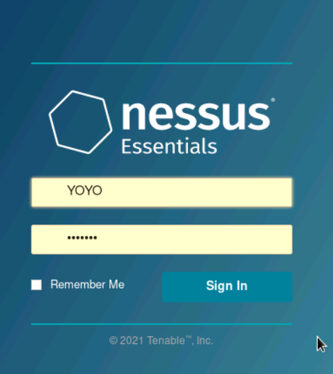 访问Nessus控制端https://127.0.0.1:8834/。输入安装时设置的账号信息