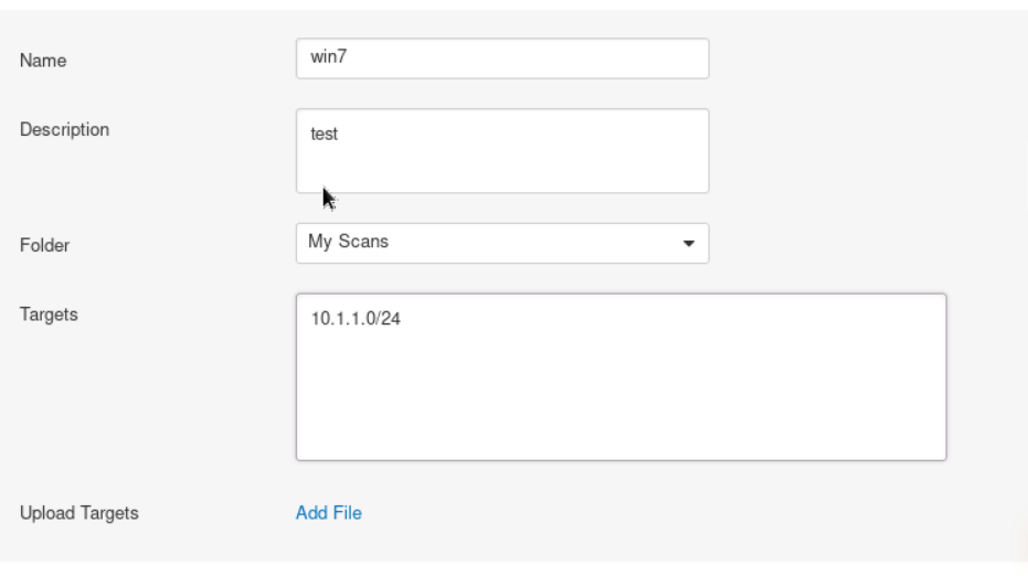 配置扫描信息,主要设置扫描名称、描述和扫描目标三个信息即可,其他配置选择默认,配置完成点击Save。选择对整个10.1.1.0/24网段进行扫描,如下图所示。