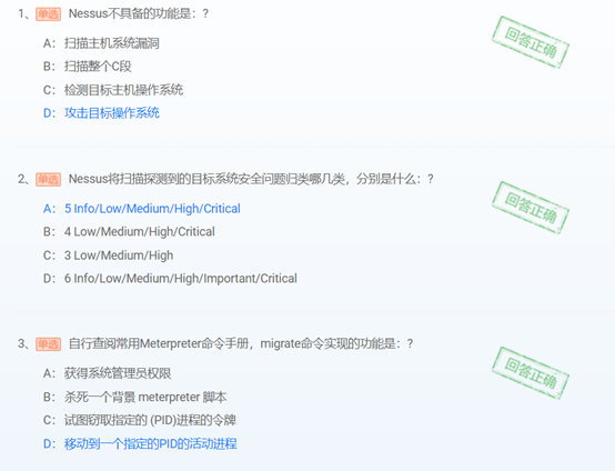 通过该实验,我熟悉了Nessus漏洞扫描工具的安装和主机漏洞扫描的方法,学会了利用Nessus扫描结果筛选合适的Metasploit攻击模块进行安全测试、攻击。