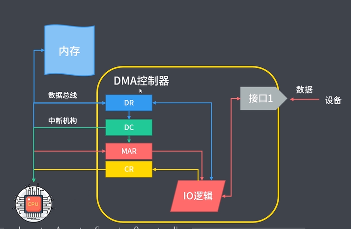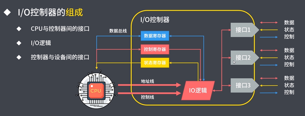 作用:接收并识别CPU命令、向CPU报告设备状态、数据交换、地址识别