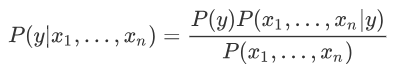 上一节我们已经了解了贝叶斯公式,下面使用贝叶斯公式将多特征分类问题表达出来,如下所示: