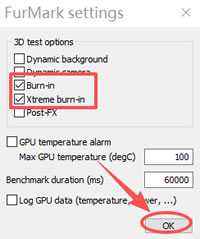 4) 勾选 “Burn-in” 和 “Xtreme burn-in”,点击 “OK”: