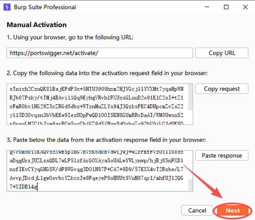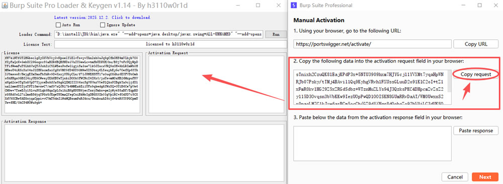 5) 点击 “Copy request” 粘贴到 “Activation Request” 里面: