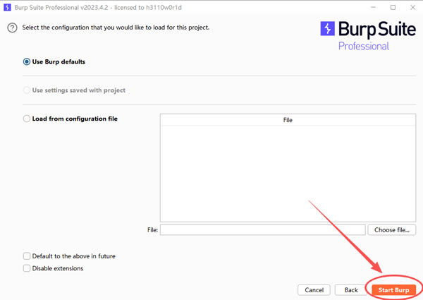 10) 点击 “Start Burp”: