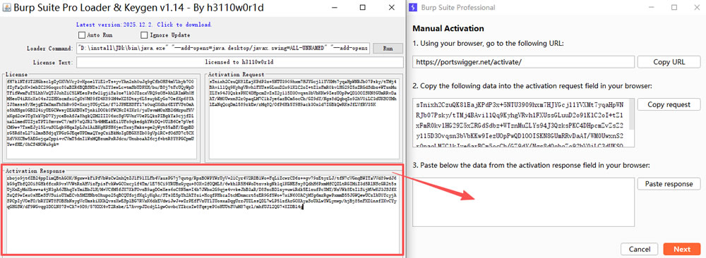 6) 复制下面的 “Activation Request” 粘贴到右边的方框内: