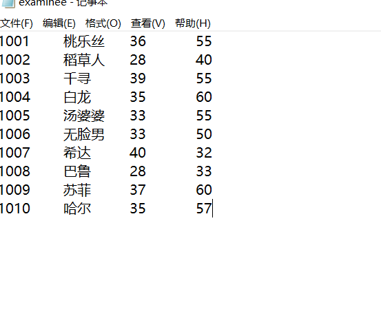#include<stdio.h> #include<string.h> #define N 10 typedef struct student { long int id; char name[20]; float objective; float subjective; float sum; char level[10]; }STU; void input(STU s[], int n); void output(STU s[], int n); void process(STU s[], int n); int main() { STU stu[N]; printf("录入%d个考生信息:准考证号,姓名,客观题得分(<=40),操作题得分(<=60)\n", N); input(stu, N); printf("\n对考生信息进行处理:计算总分,确定等级\n"); process(stu, N); printf("\n打印考生完整信息:考证号,姓名,客观题得分,操作题得分,总分,等级\n"); output(stu, N); return 0; } void input(STU s[], int n) { FILE* find; int i; find = fopen_s("examinee.txt", "r"); for (i = 0; i < n; i++) fscanf_s(find, "%ld %s %f %f", &s[i].id, s[i].name, &s[i].objective, &s[i].subjective); fclose(find); } void output(STU s[], int n) { FILE* out; int i; out = fopen_s("result.txt", "w"); printf("准考证号 姓名 客观题得分 操作题得分 总分 等级\n"); fprintf(out, "准考证号 姓名 客观题得分 操作题得分 总分 等级\n"); for (i = 0; i < n; i++) { fprintf(out, "%-12ld%-6s%-12.2f%-12.2f%-8.2f%s\n", s[i].id, s[i].name, s[i].objective, s[i].subjective, s[i].sum, s[i].level); printf("%-12ld%-6s%-12.2f%-12.2f%-8.2f%s\n", s[i].id, s[i].name, s[i].objective, s[i].subjective, s[i].sum, s[i].level); } fclose(out); } void process(STU s[], int n) { int i, j; STU t; for (i = 0; i < n; i++) s[i].sum = s[i].objective + s[i].subjective; for (i = 0; i < n - 1; i++) { t = s[i]; for (j = i + 1; j < n; j++) { if (s[i].sum < s[j].sum) { t = s[j]; s[j] = s[i]; s[i] = t; } } } for (i = 0; i < n; i++) { if ((i + 1) <= n / 10) strcpy_s(s[i].level, "优秀"); else if ((i + 1) > n / 10 && (i + 1) <= n / 2) strcpy_s(s[i].level, "合格"); else strcpy_s(s[i].level, "不合格"); } }