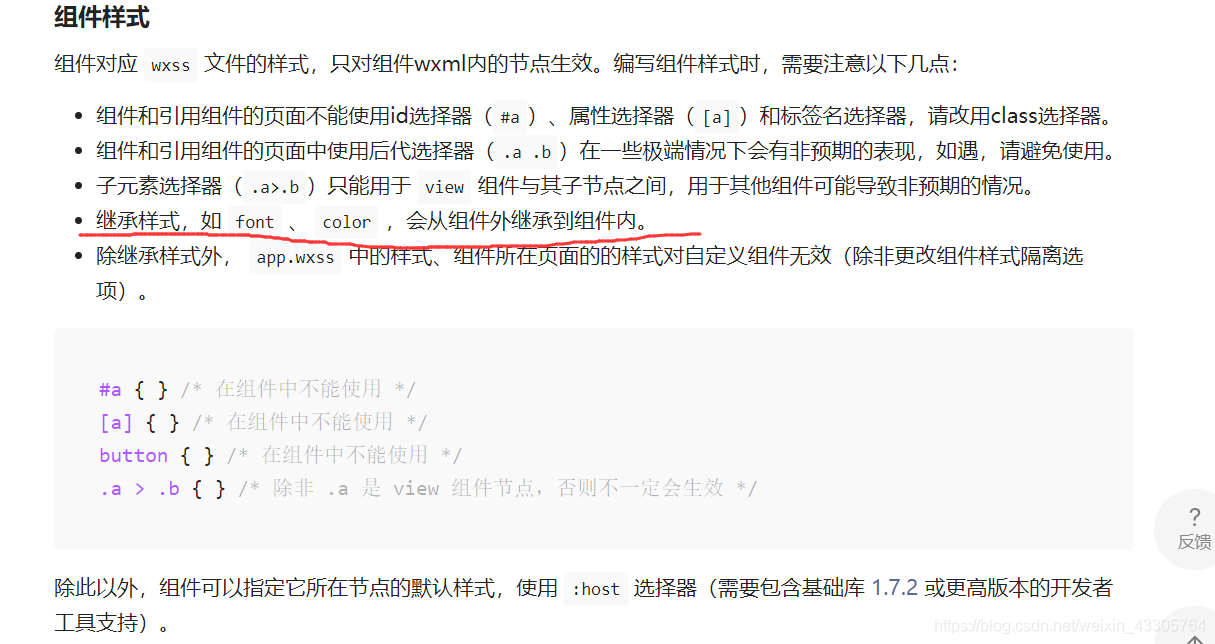 需要注意的是,组件并不能继承所有的全局样式。实际上,只有很小一部分样式能被组件继承。