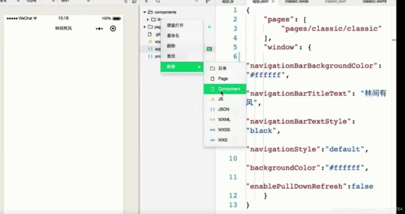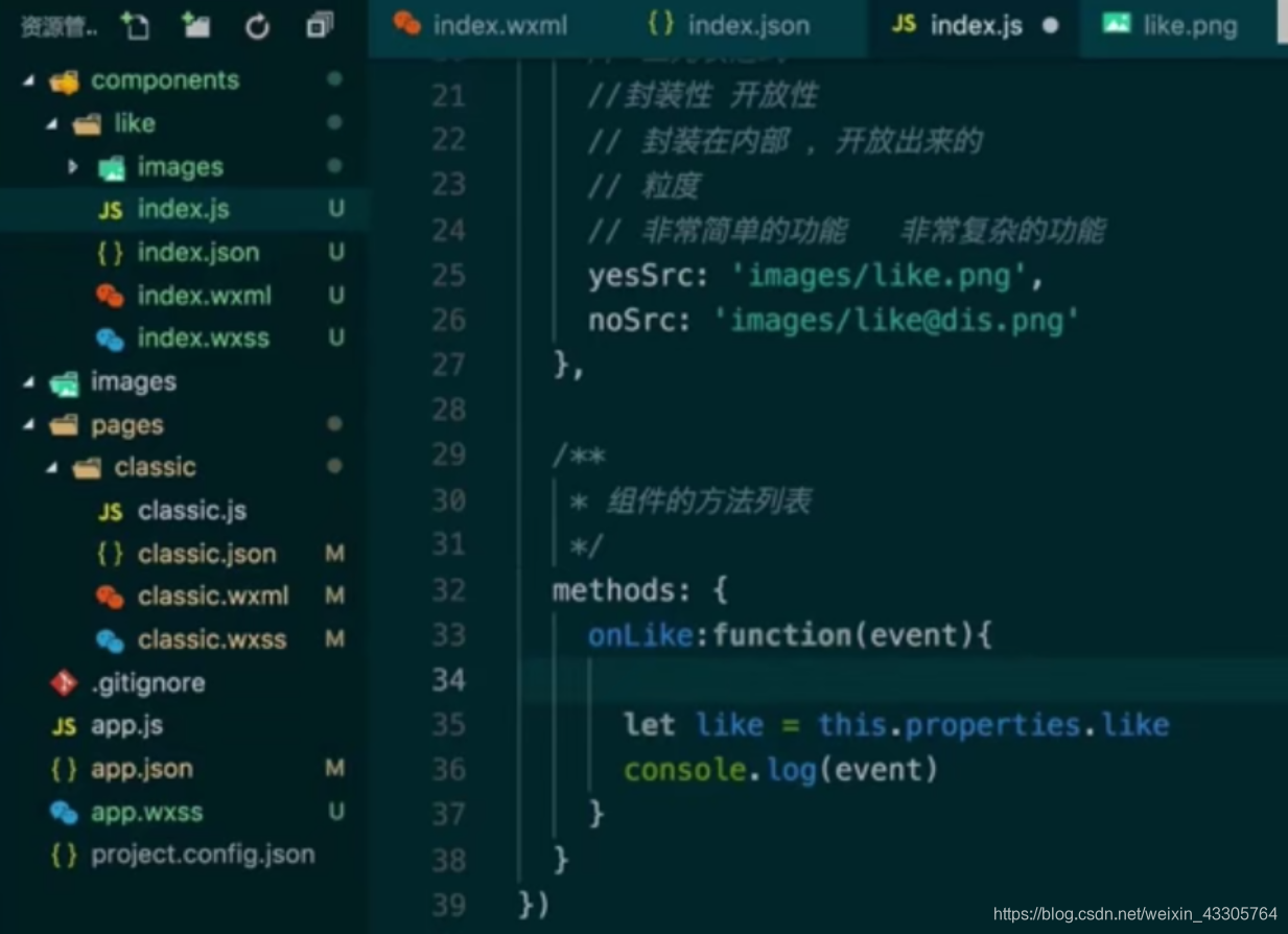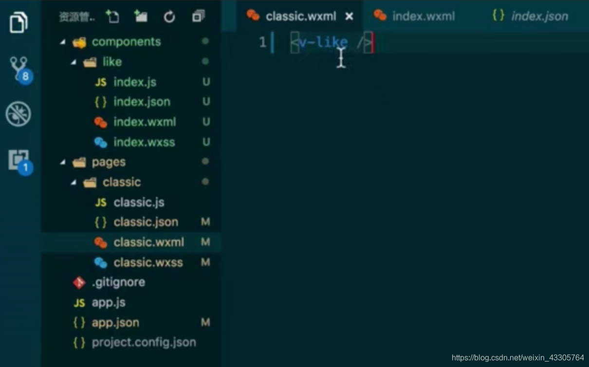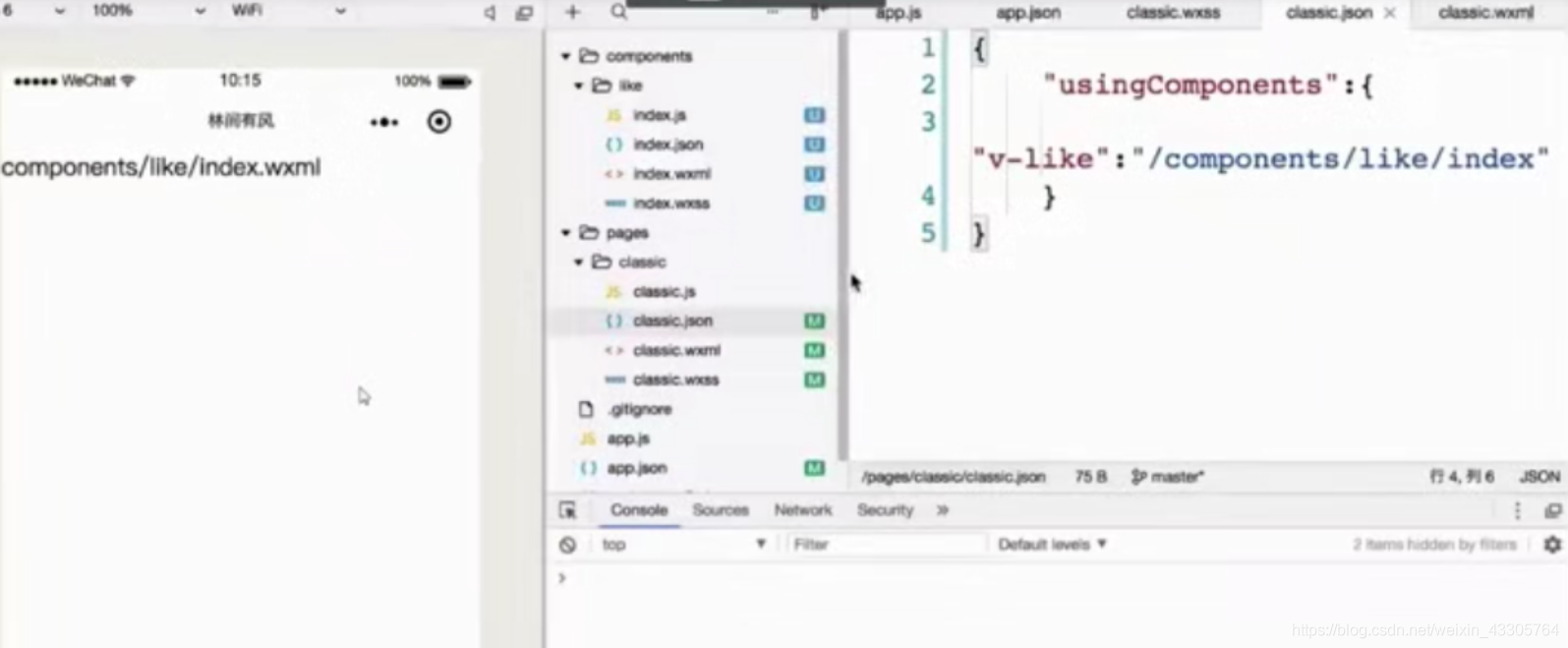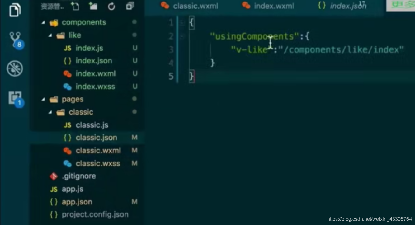 概括:使用组件的流程:先在json文件里引用,然后在wxml文件里使用