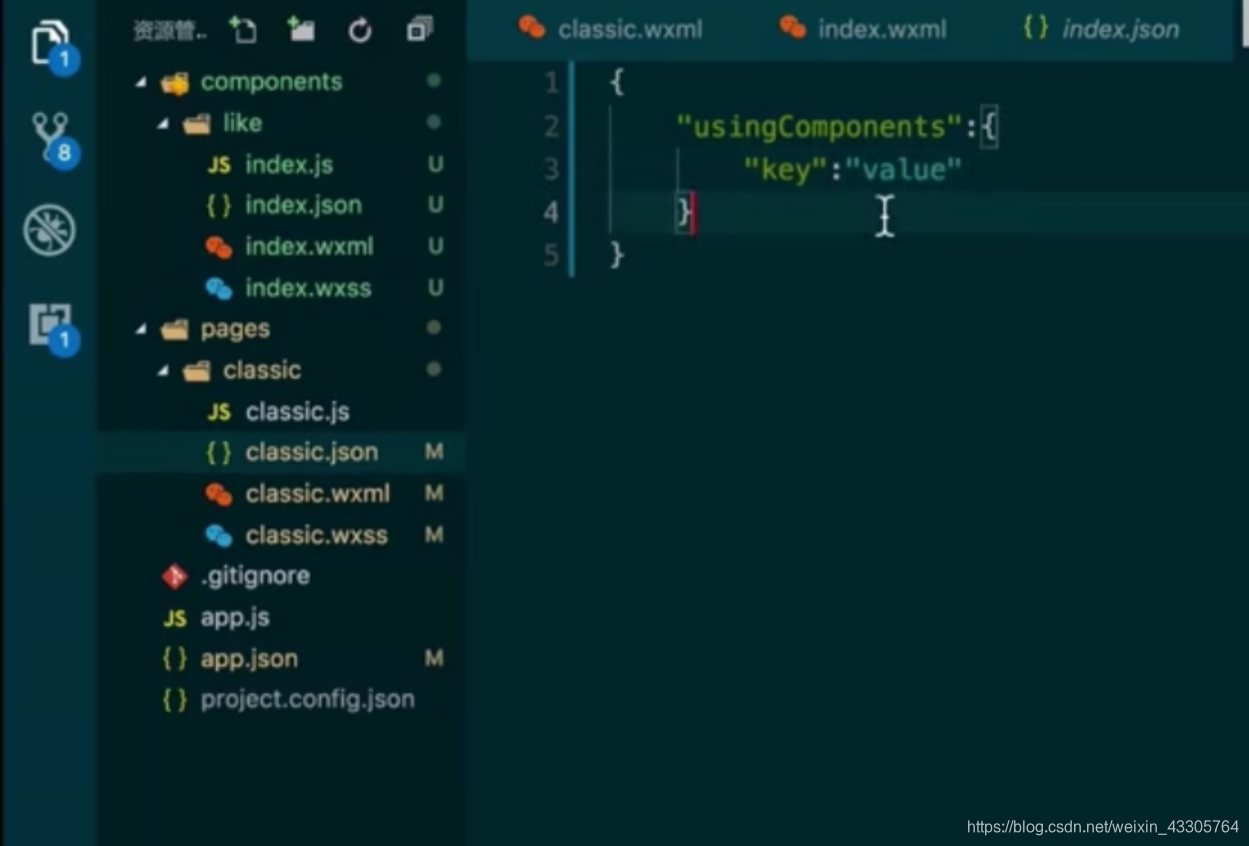 这里的key就是组件的名称,value则是组件的路径。这里的key是可以任意设置的,只需要保持在wxml里保持一致即可。