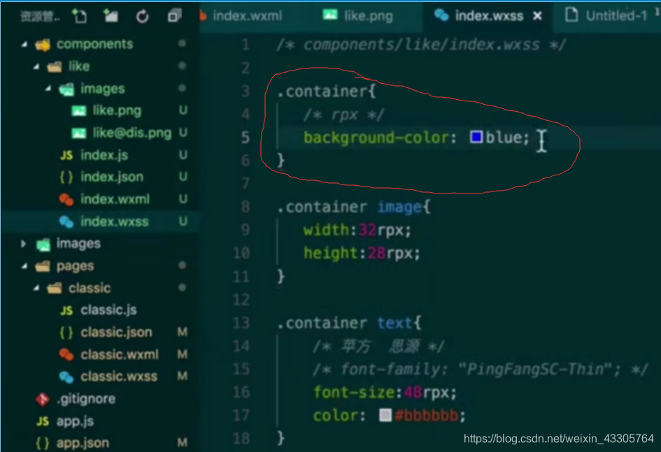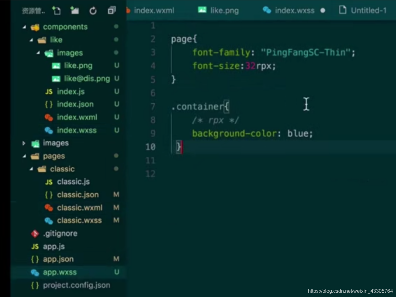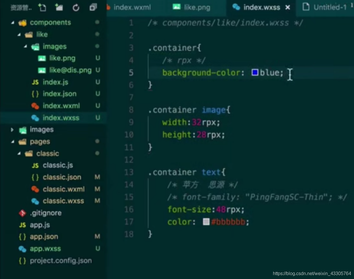 假如我们把在组件的wxss设置的.container以及background-color整个部分转移到app。wxss,希望组件能够继承该属性:
