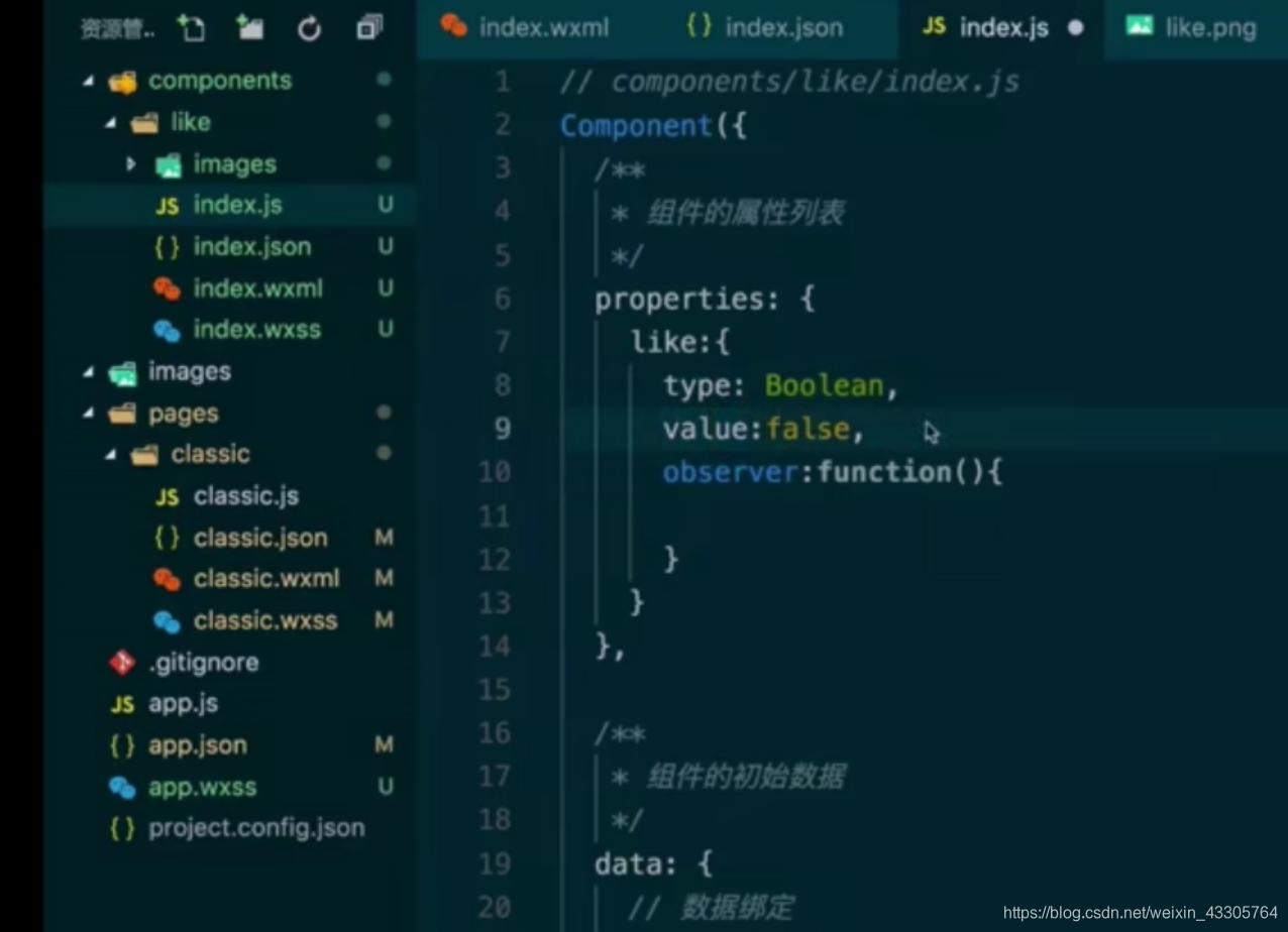 例如在上图中,我们定义了一个名为like的对象