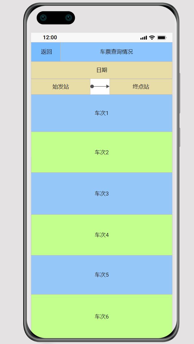 界面组成:主题名称,搜索框,输入框,查询车次信息