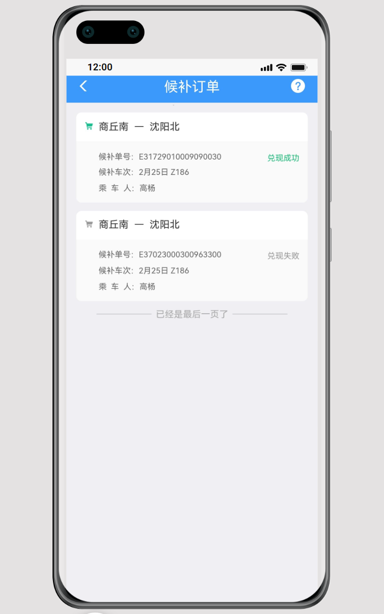 操作步骤:在订单界面中点击候补订单后查看相关信息