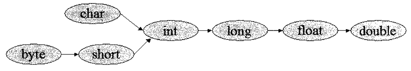 箭头左边的数值型可以自动类型转换为箭头右边的数值型。