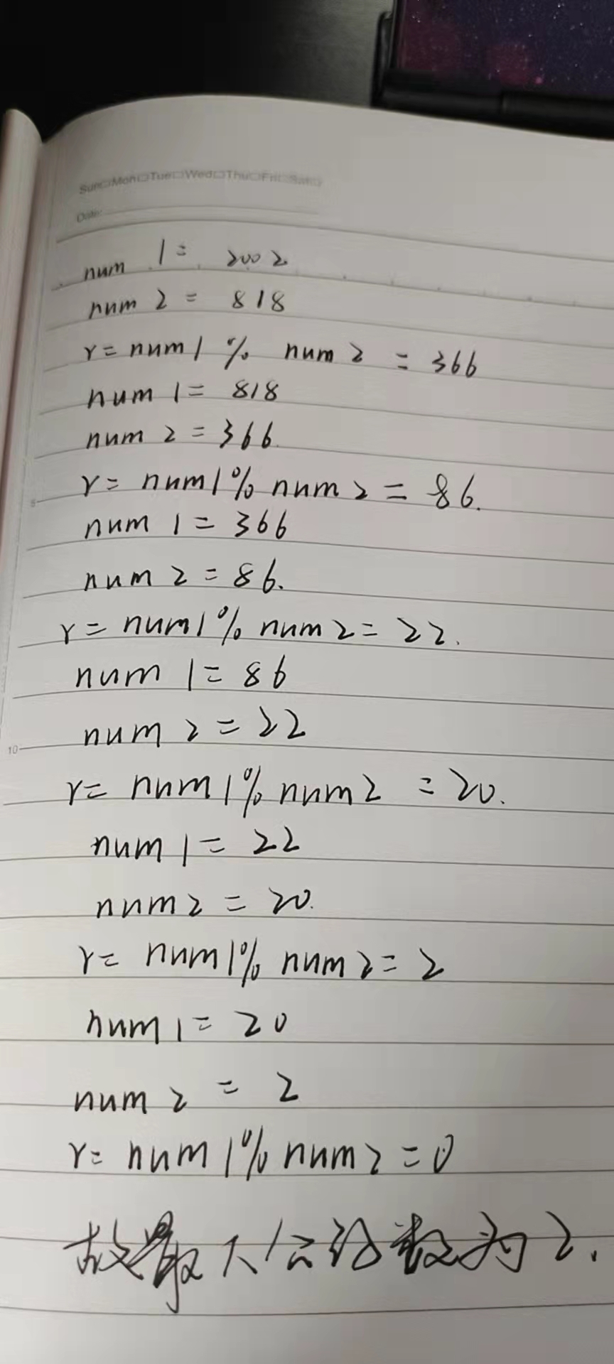欧几里得算法又称辗转相除法,是指用于计算两个非负整数a,b的最大公约数。即设两个数进行相除(大的除以小的)然后用小的那个数除以余数,再用小的除以得到的余数,一直相除,最后余数为零为止,即最后一次相除的两个数中较小的那个即为最大公约数