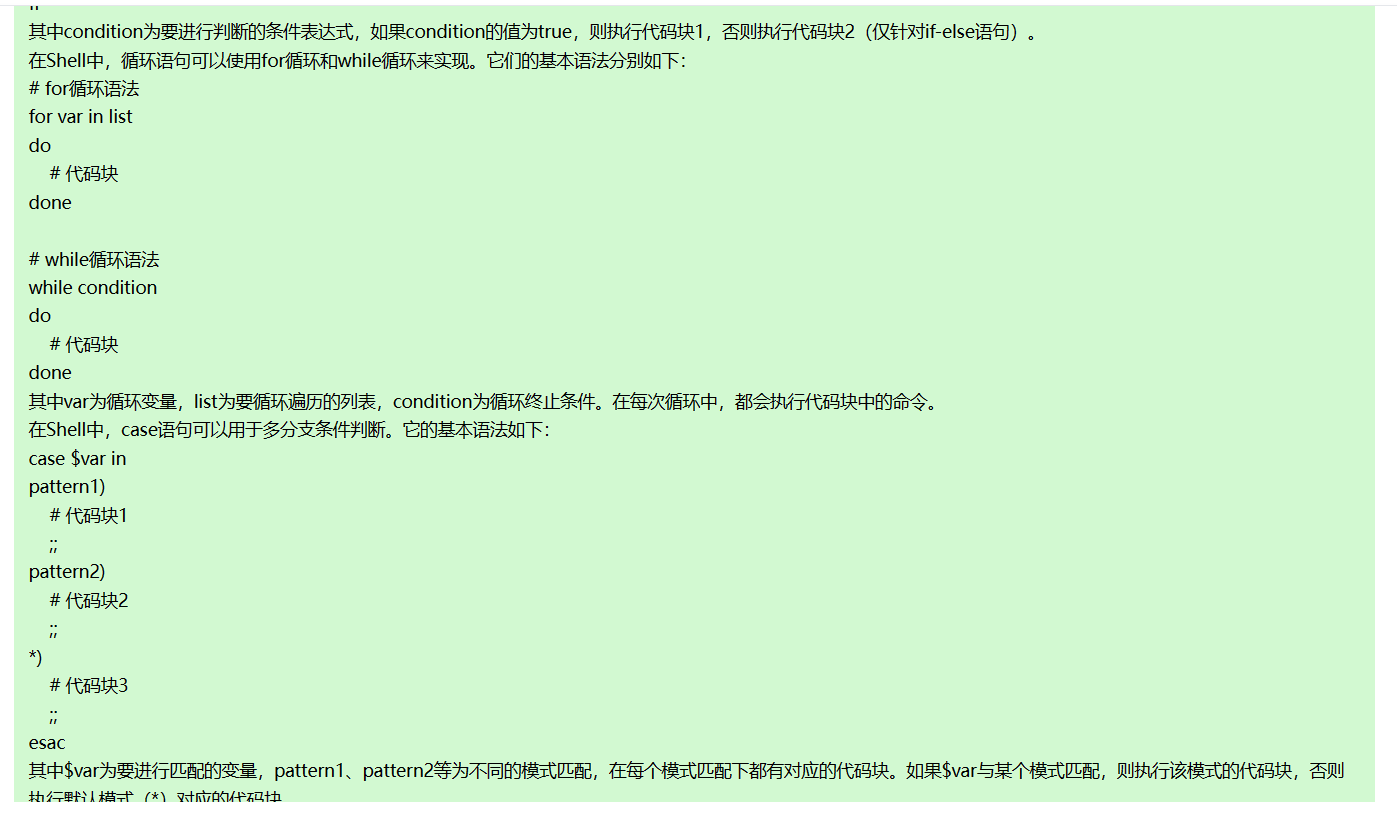 此外,sh编程语言还支持控制sh程序执行的测试条件、循环、case等语句