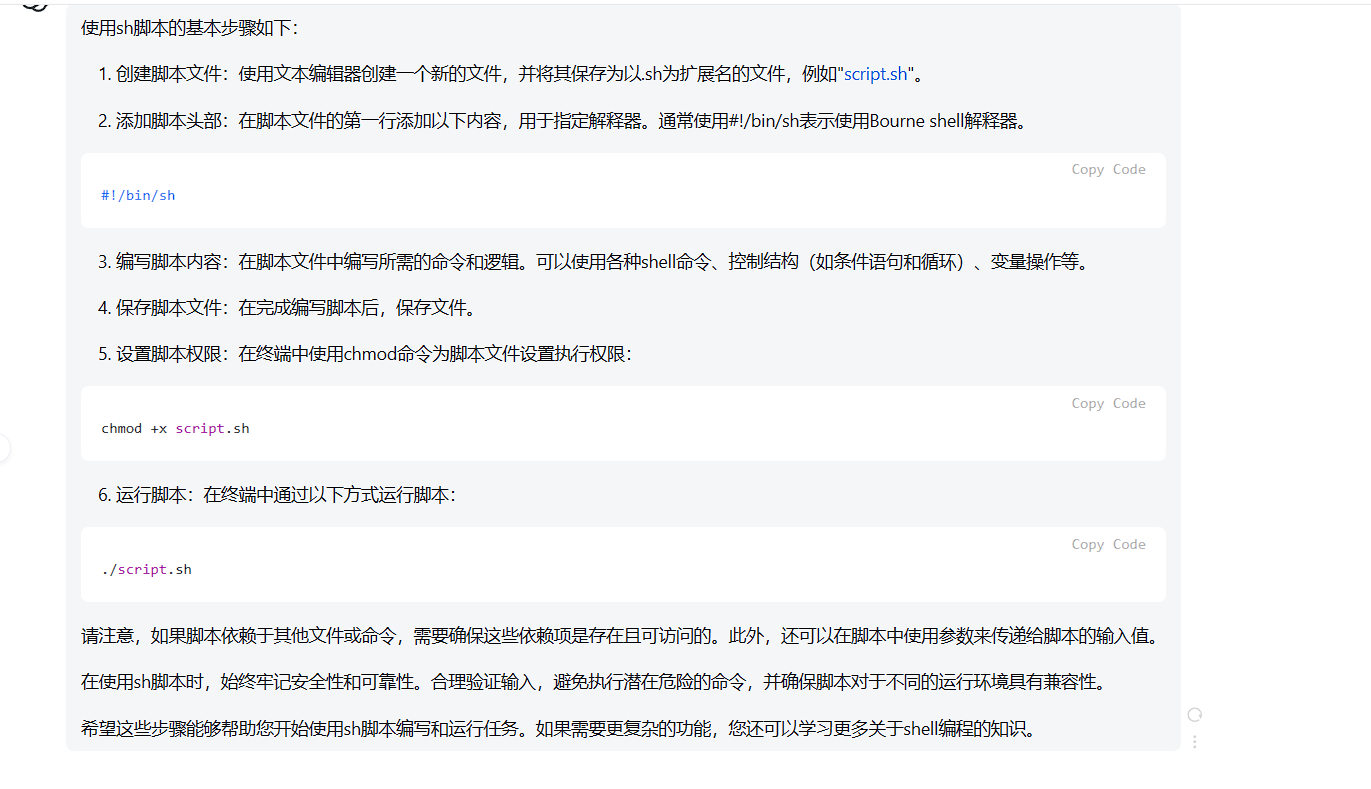 - sh脚本是一个包含sh语句的文本文件,命令解释程序sh要执行该语句。