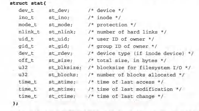 所有的stat系统调用都以stat结构体形式返回信息,其中包含以下字段: