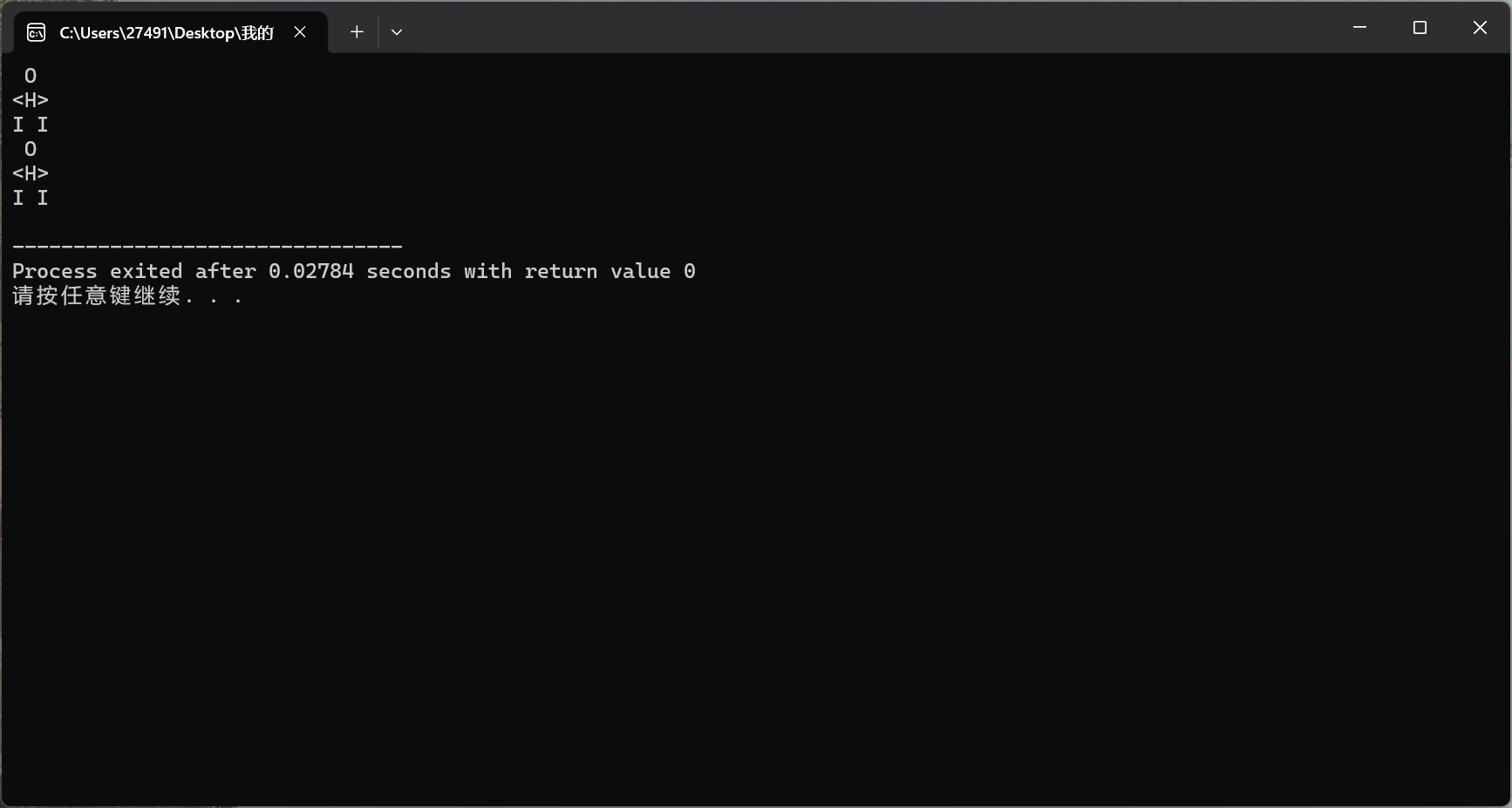 #include <stdio.h> int main() { printf(" O \n"); printf("<H>\n"); printf("I I\n"); printf(" O \n"); printf("<H>\n"); printf("I I\n"); return 0; }