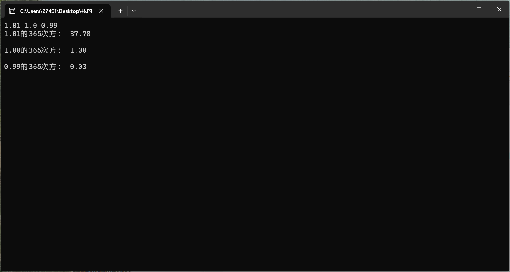 printf("%.2f的365次方: %.2f\n", x, ans);