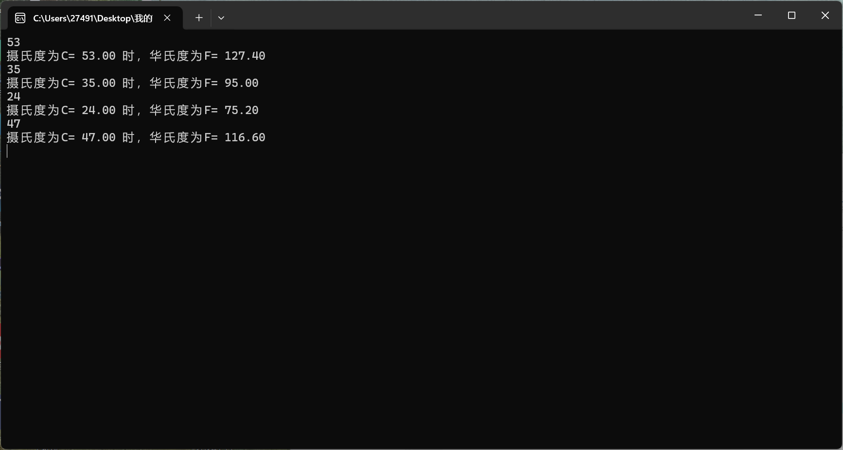 printf("摄氏度为C= %.2f 时,华氏度为F= %.2f", C, F);
