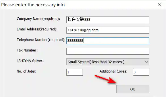 13、输入【Company、Email、Telephone】(可随便输入),点击【OK】