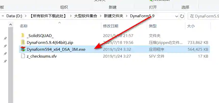 2、打开解压后的文件夹,双击运行【Dynaform594_x64_DSA_3M】安装程序
