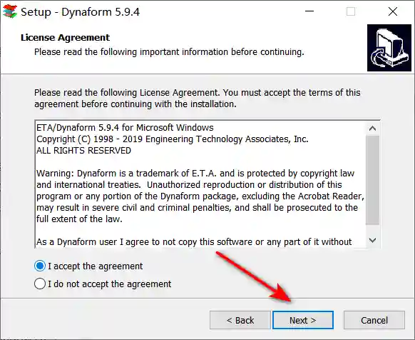 4、勾选【I accept the agreement】,点击【Next>】