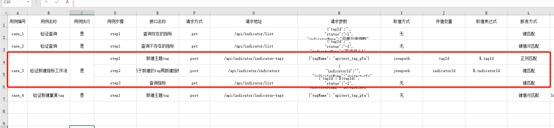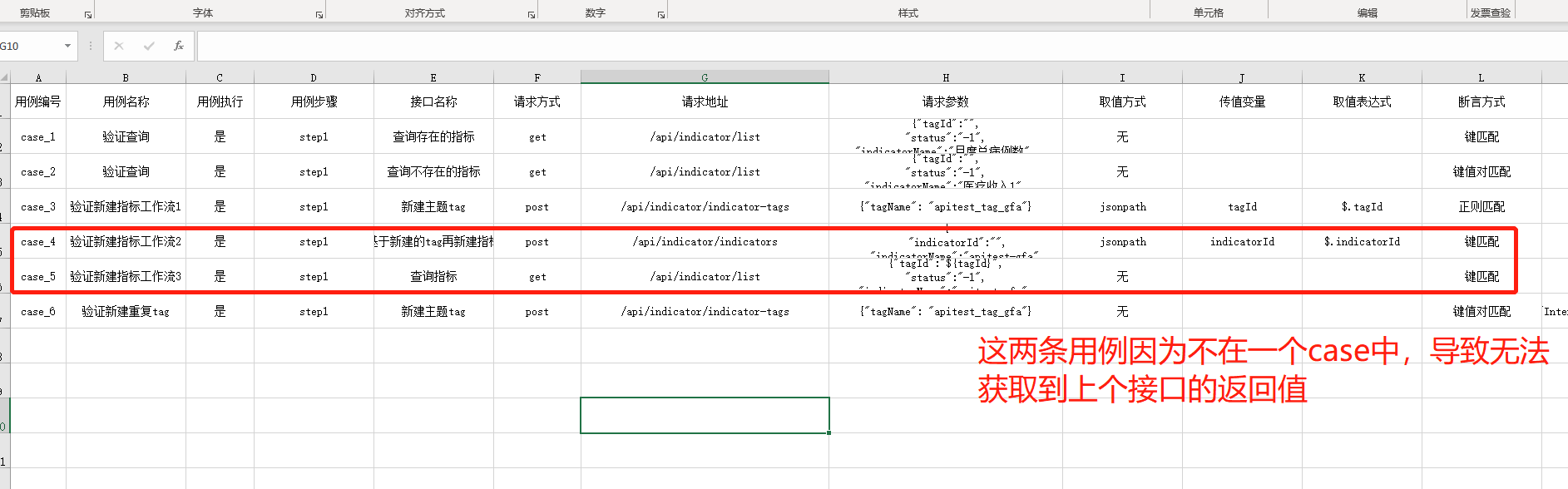 将有关联的接口写到同一条用例中,如下标记的三条用例是相关联的,合并单元格后unnittest会把起当成一条用例,但是我封装的requests中有方法又可以读取到这种合并的数据,并全部都执行掉