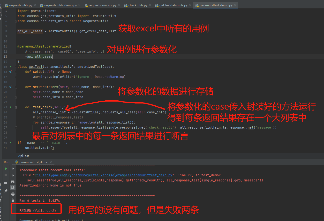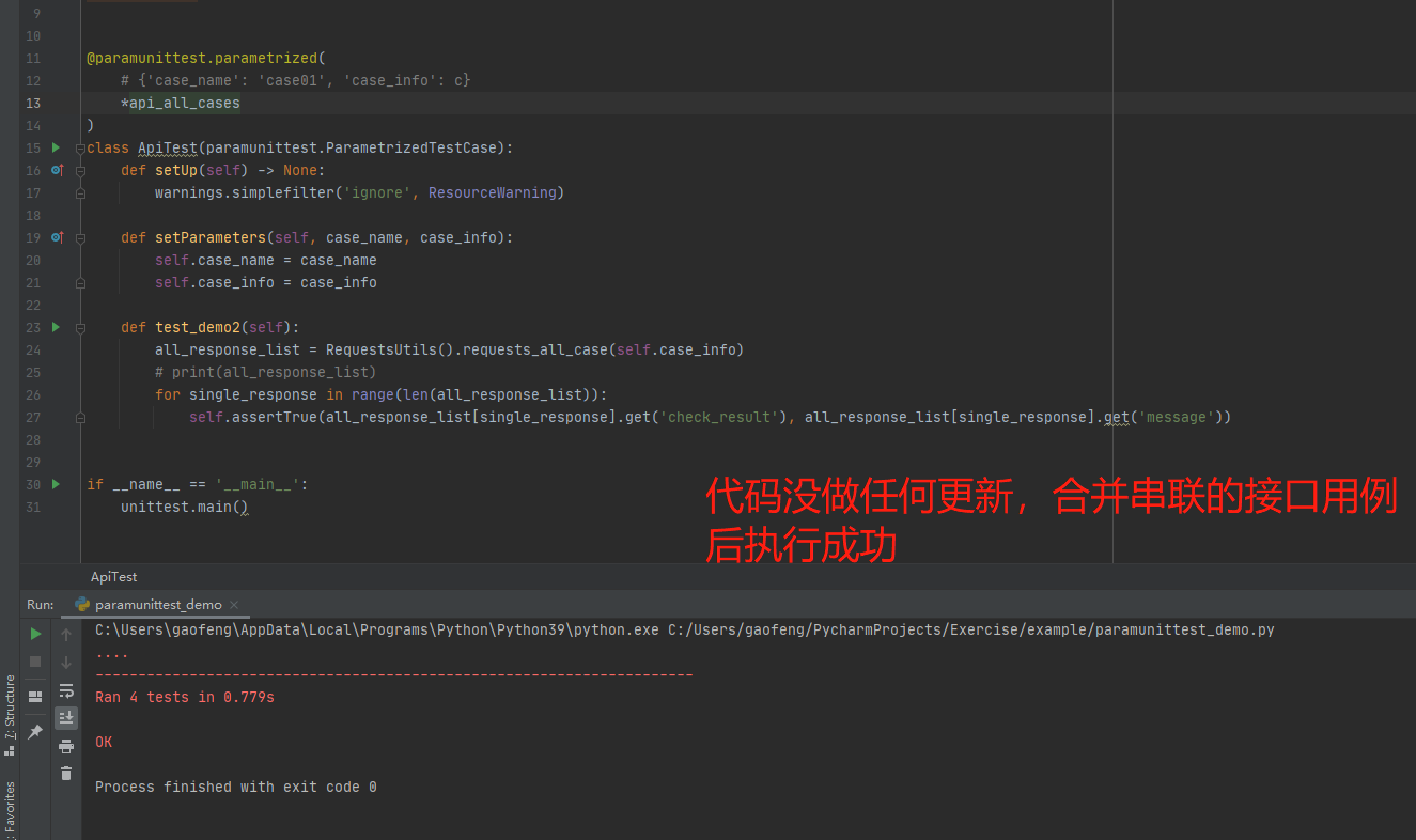 - 上述代码中,和往常一样继承unittest.TestCase也可以实现参数化,两者也没有区别;