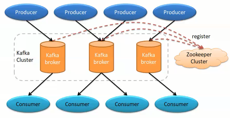 - zookeeper,负责维护和协调broker,当kafka系统中新增了broker或者某个broker发生故障,由zookeeper通知生产者和消费者。生产者和消费者依据zookeeper的broker状态信息与broker协调数据的发布和订阅任务。负责broker controller的选举。