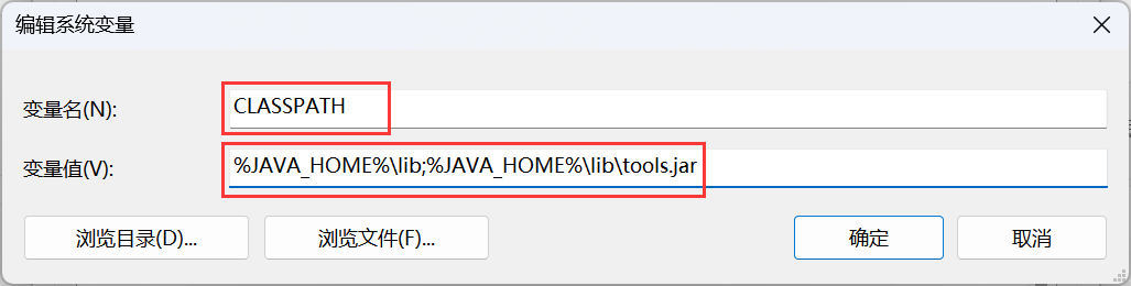 4.8. 变量名填 CLASSPATH ,变量值填 %JAVA_HOME%\lib;%JAVA_HOME%\lib\tools.jar ,然后点击 确定