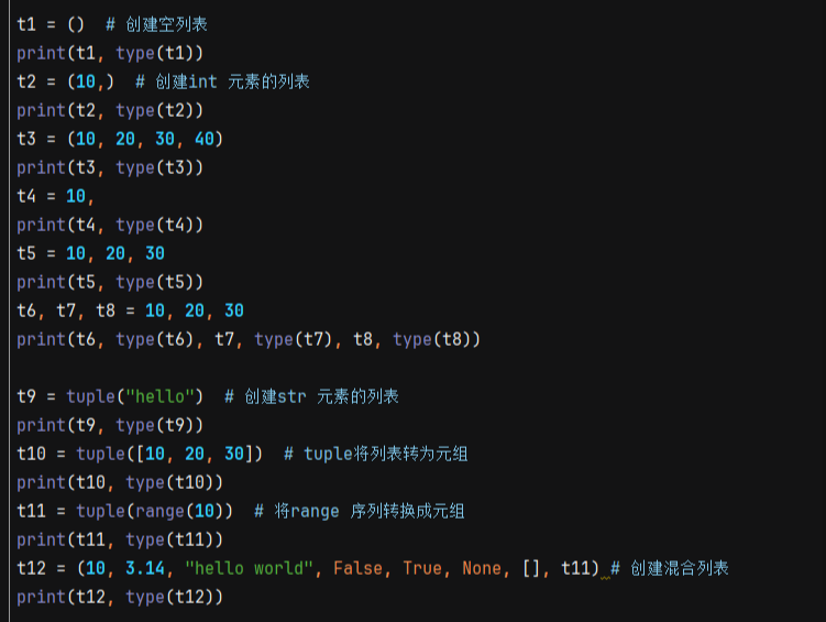 1.元组创建: