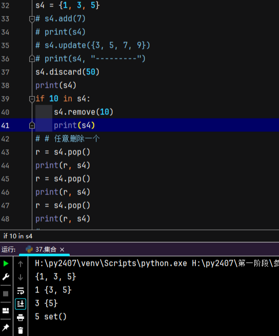 1.集合的去重和无序: 集合是无序的,里面的元素是唯一的,集合中的数字会自动从小到大排序