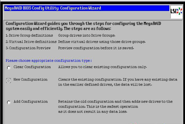 注:configuration wizard 选项可以清空之前的raid配置