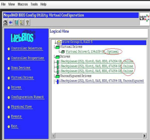 在主界面中可以看到阵列状态,阵列中每个硬盘都是在线的online状态