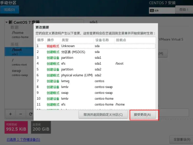 3.确定已经分配好的分区,删除旧分区格式。点击接受更改即可。