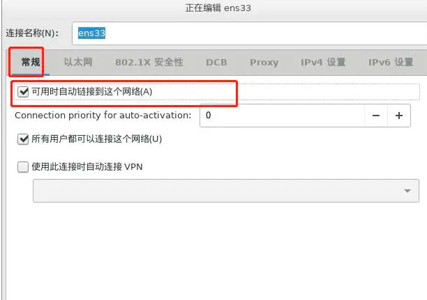 2.选择常规,勾选可用时自动连接到这个网络,以免重启后网卡不自动连接