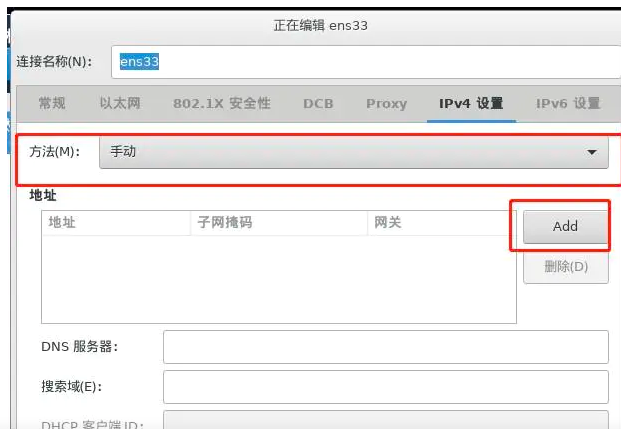 3.选择IPv4设置,进入后选择方法选择手动连接。