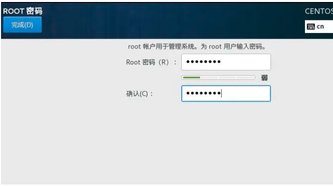 7.设置root密码后,点击完成即可,如密码过于简单,需要点击两次完成。