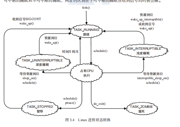 TASK_INTERRUPTIBLE : 这是针对等待某事件或其他资源而睡眠的进程设置的。在内核发送信号给该进程时表明等待的事件已经发生或资源已经可用,进程状态变为 TASK_RUNNING,此时只要被调度器选中就立即可恢复运行。