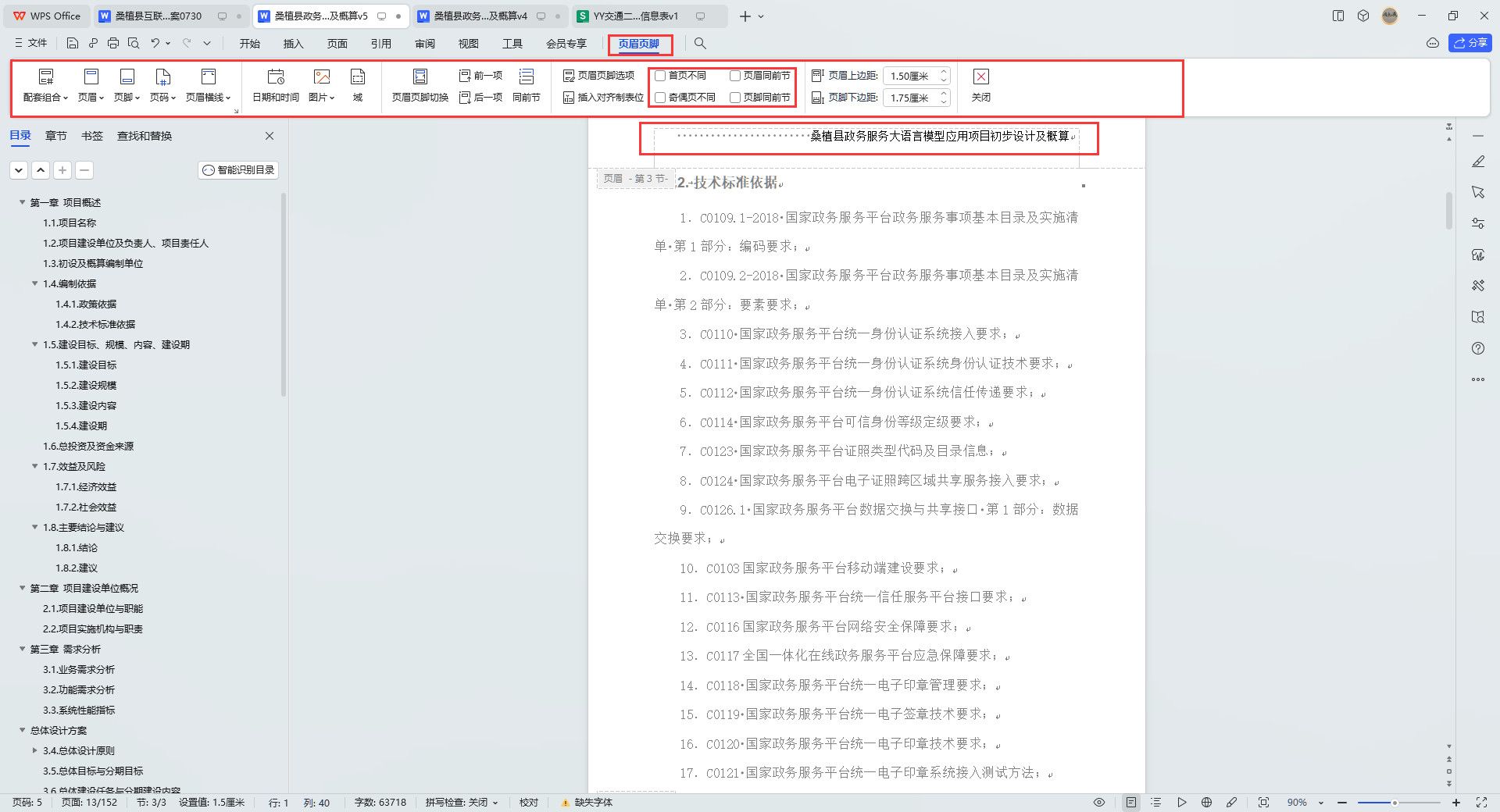 点击页眉,选择页面顶端页眉与页脚,将“页眉同前节”√去掉,可使前节页眉与本节不同。