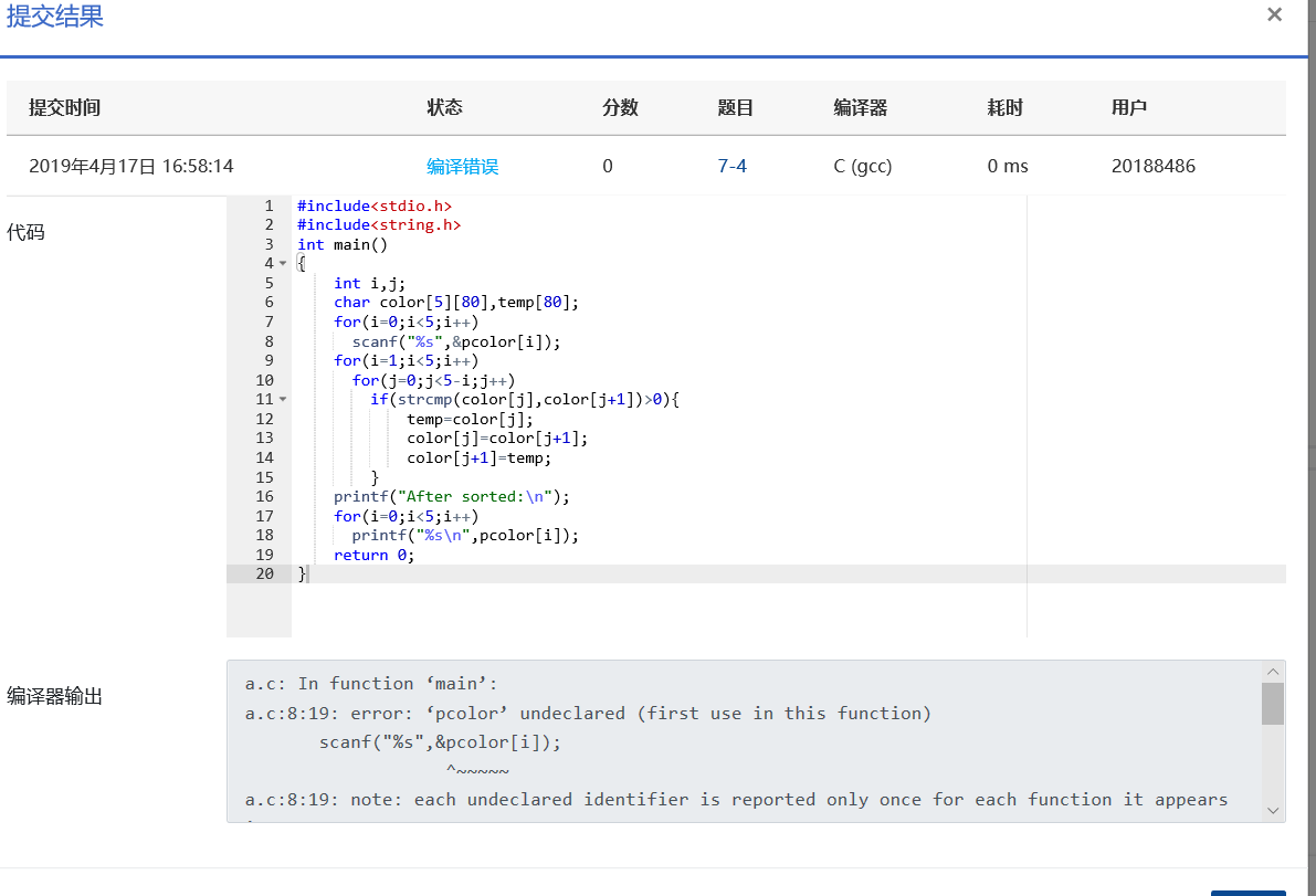 if(strcmp(color[j],color[j+1])>0){