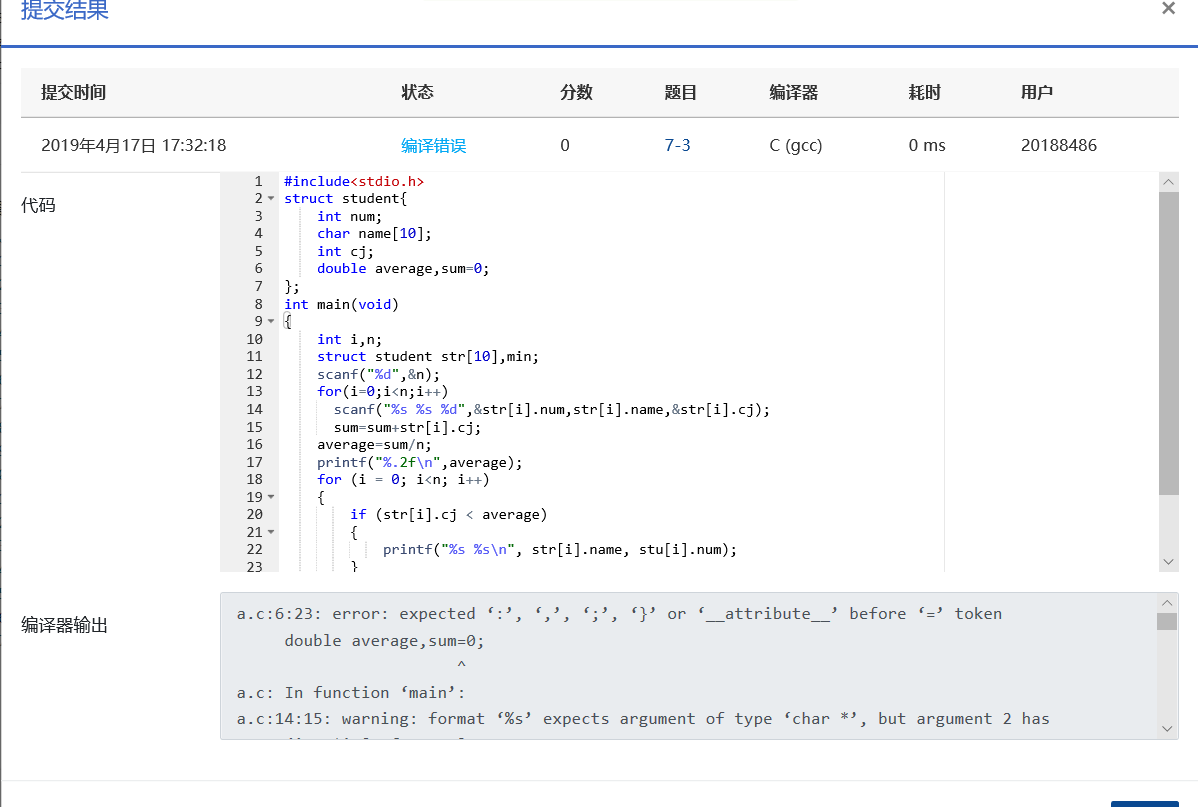 运用了一个名为struct student的结构数据类型