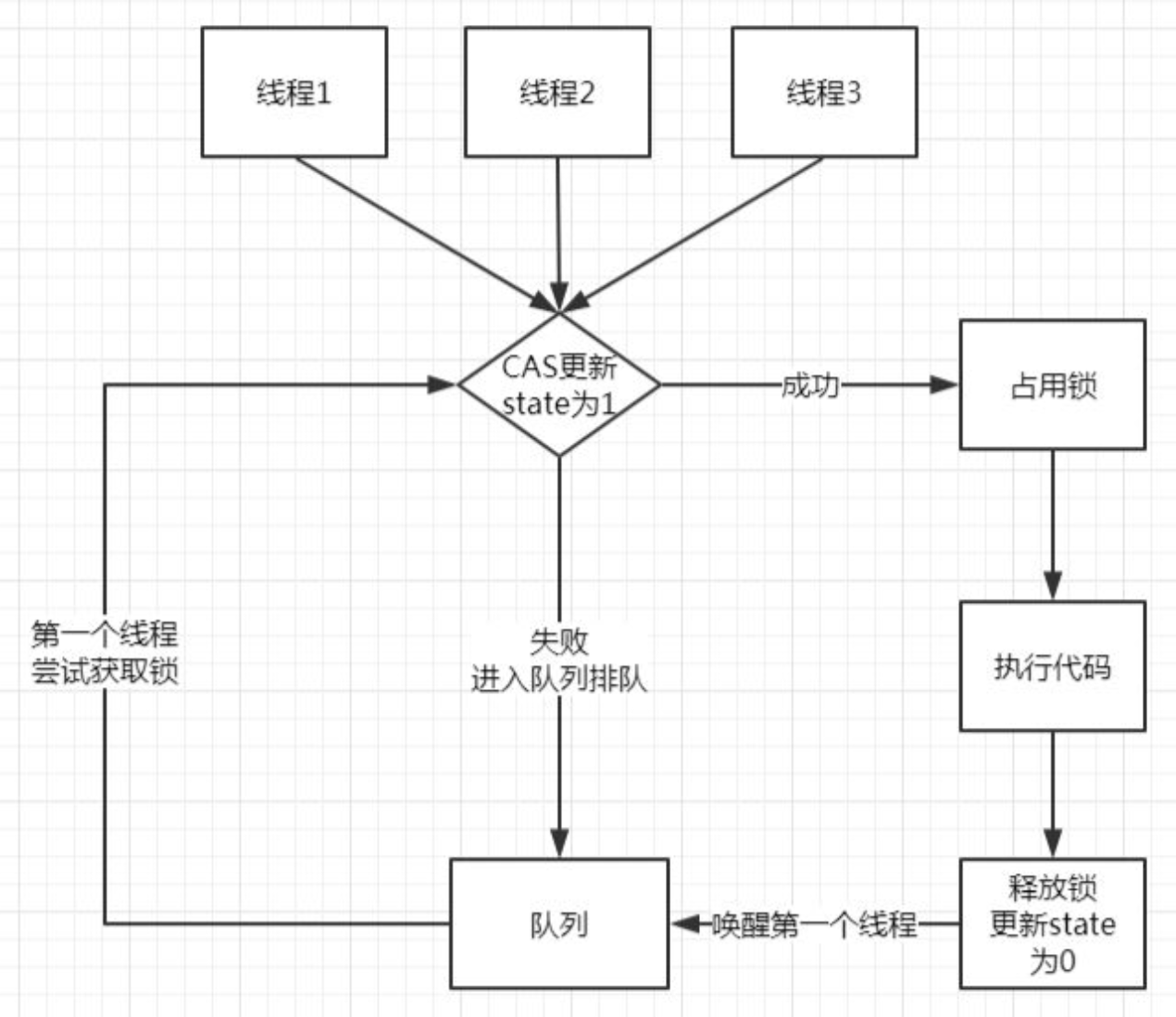 多个线程对同一个锁的争用肯定只有一个能成功,没有抢到锁的其它的线程就要排队,所以我们还需要一个队列