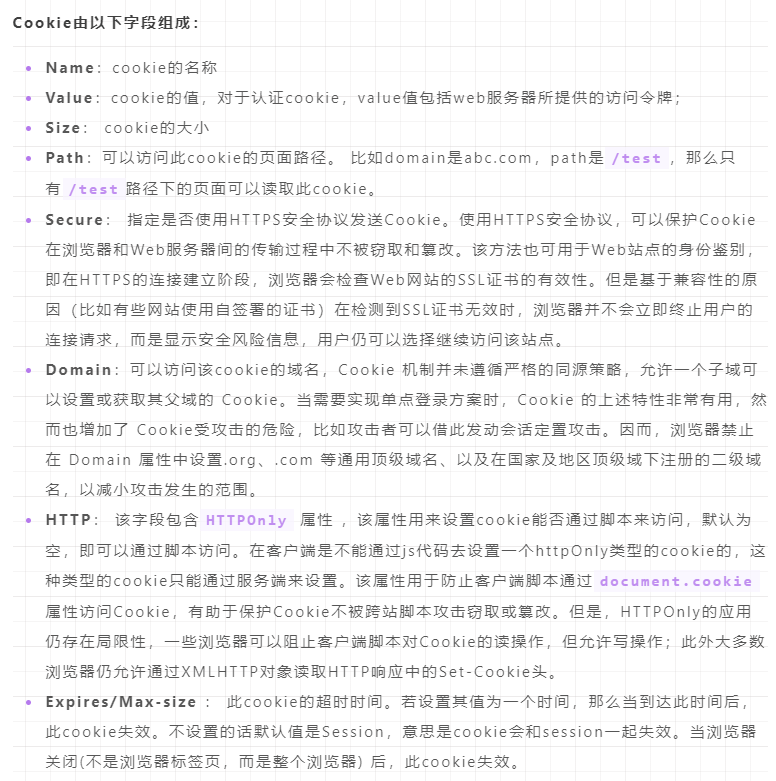 二、cookie有哪些字段,作用分别是什么;